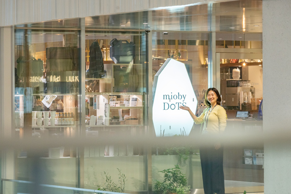ドッツでは、広島県内の自治体や事業者さんの魅力発信やプロモーションの伴走支援を担当している新家さん。ヒアリングを行い、ご本人たちが気づいていない魅力の打ち出し方を提案していきます。また、実現したいことを踏まえて、行政、デザイナー、事業者、学生など幅広いメンバーをつないでチームを作り、広島駅ビル内のショップ兼レストラン「miobyDoTS(ミオバイドッツ)」を活用したイベントや物販、期間限定メニューなどの企画・運営を手がけています。