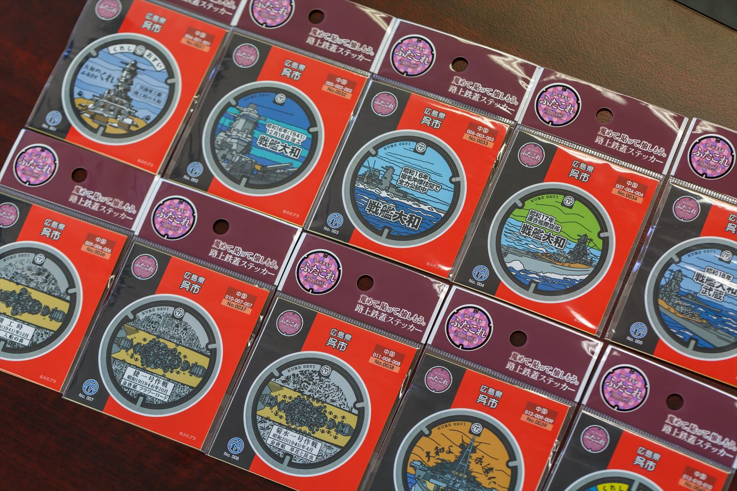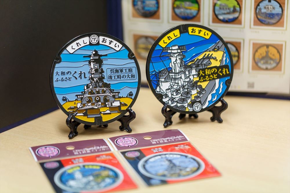 そこで戦艦大和をデザインしたマンホールを2種類造り、設置、カード化を行いました。別々のデザインが2種類存在すると、一つを見つけた後にもう一つも見つけたくなり、回遊性が生まれます。マンホールを探して街を歩いていると呉の美味しいお店や思いがけない素敵な風景に偶然出会ったり、お土産を買って帰ってもらったりして(笑)